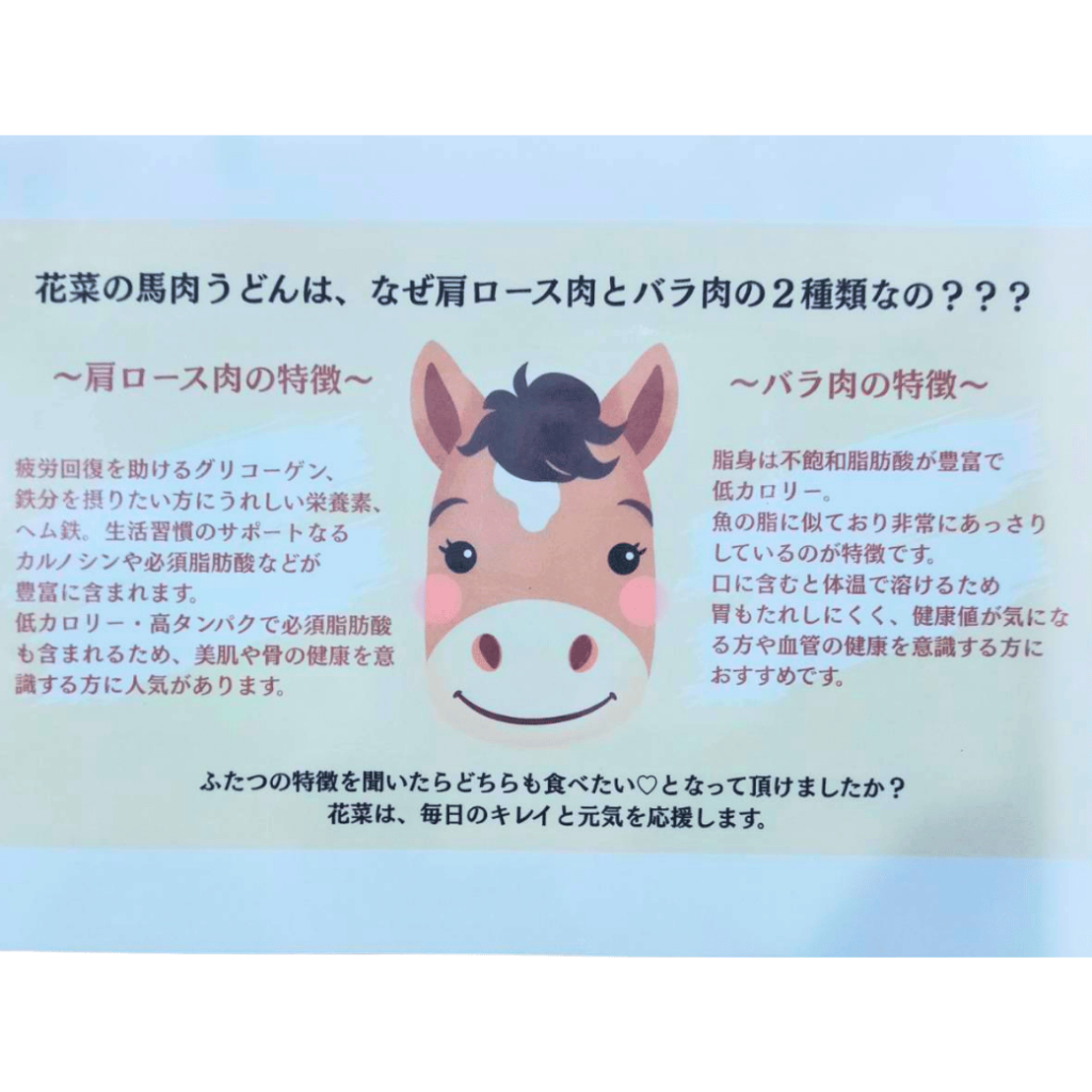馬肉うどんは、肩ロースとバラ肉の“2種類入り”が魅力!